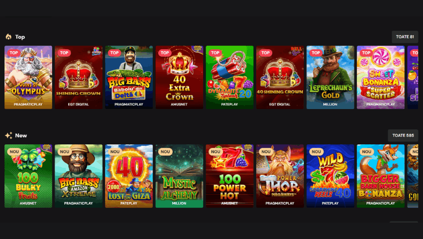 Platforma este construită în jurul sloturilor, și a câtorva jocuri de casino live, fără zonă de pariuri sportive momentan, așa că întreaga experiență se învârte în jurul păcănelelor și a varietății din lobby. Aceasta este completată de promoții recurente și de bonusul exclusiv de bun venit, gândite să prelungească timpul de joc. Dacă vrei să afli cum se comportă platforma sub presiune, ce merită cu adevărat și care sunt punctele unde trebuie să fii atent, citește în continuare recenzia noastră detaliată.
